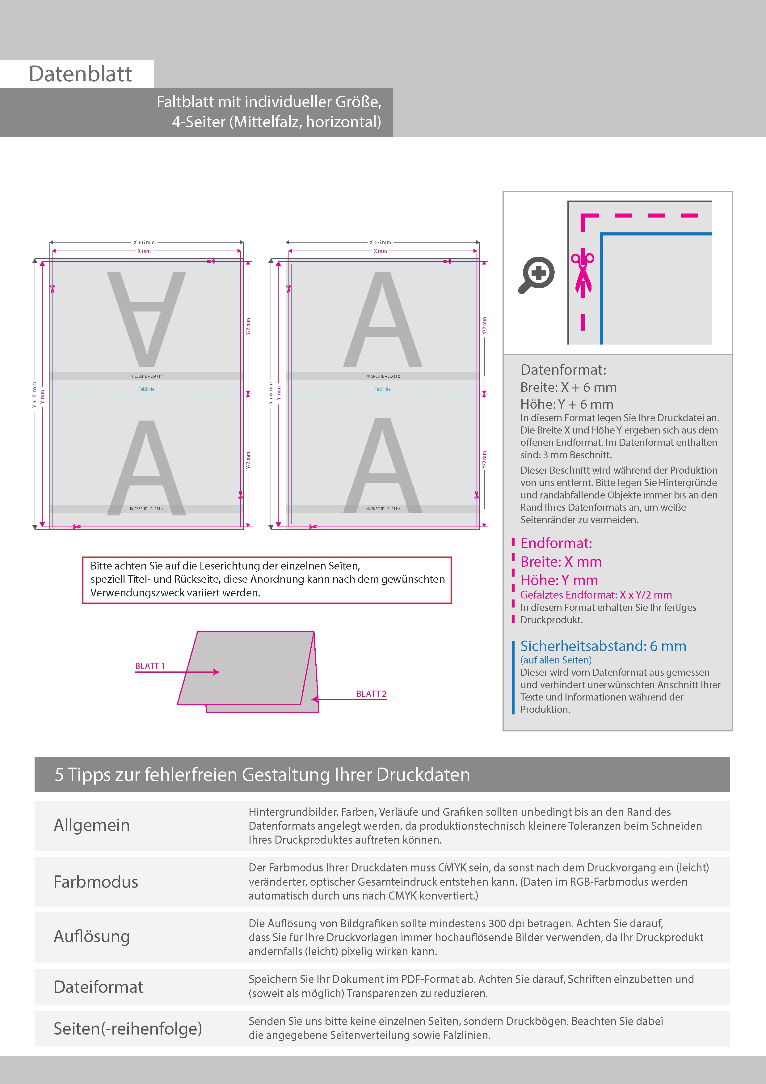 Faltblatt mit individueller Größe, 4-Seiter (Mittelfalz), Falzung an der horizontalen Seite
